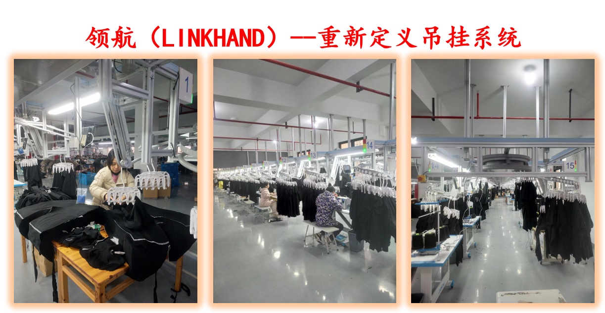本项目以MES系统为基础,增加了智能吊挂系统,将裁剪、线外、外发、生产等数据统一到一个软件系统平台上,解决了信息孤岛的问题,形成了各个部门协调合作的典范。 领航(LINKHAND)智能5G吊挂系统标配8“高清平板,兼顾了物料输送、品质提升、教育培训、管理提升的综合功能,为企业智能化升级转型提供了一个强有力的数字化和智能化工具。