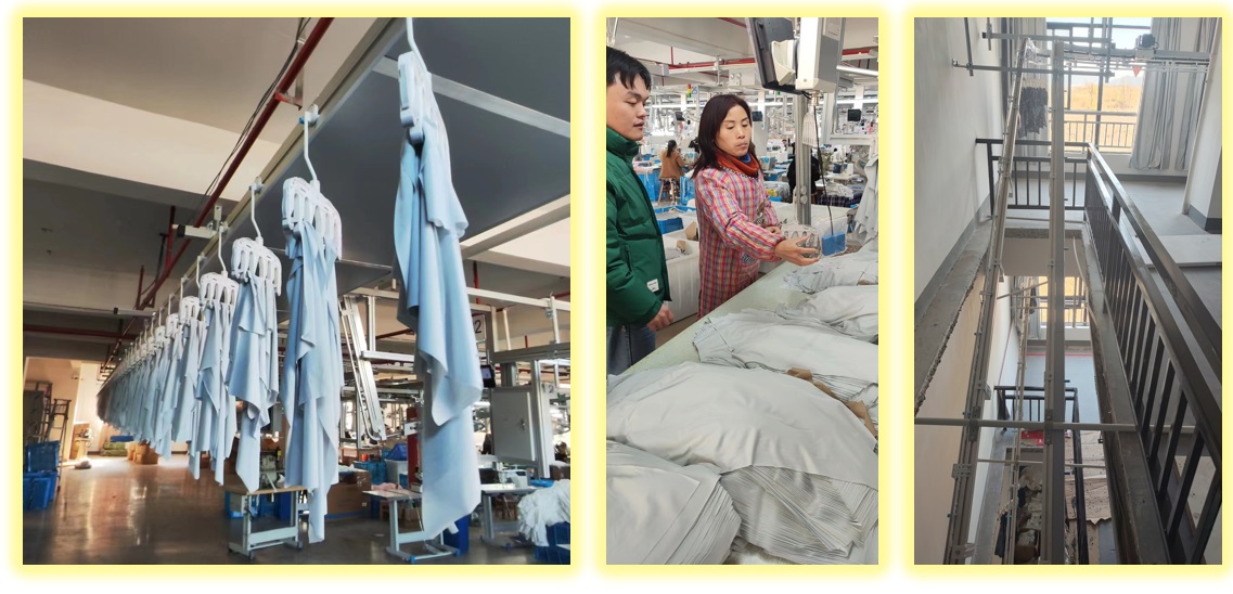 东阳智能工厂项目已经是领航(LINKHAND)平台自2023年开始投入运行的第四个项目,系统包括了生产系统、外发系统、集中挂片、裁片存储分拣和调配、5G智能吊挂、楼层间输送,双U型流水、缝后暂存分拣、烫衣等等多个环节的数据采集、物料输送、品质管控、管理提升的不同工具,是服装生产企业转型升级的实用工具,公司在金华地区的其他智能工厂项目也在持续调试中,预计还有一批新的领航(LINKHAND)5G智能工厂项目逐步投入使用,公司也会持续的为金华地区的服装行业智能化发展提供助力。